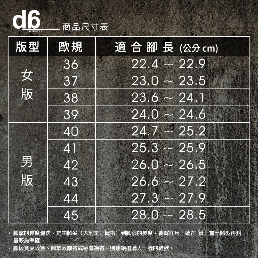 | 品牌名稱:d6 GILGA 男用潮流護趾鞋 D591M | 鞋面材質:聚氯乙烯 | 鞋底材質:合成橡膠 | 商品包裝:正常鞋盒 | 商品尺寸:40–44 | 產地:印尼 |